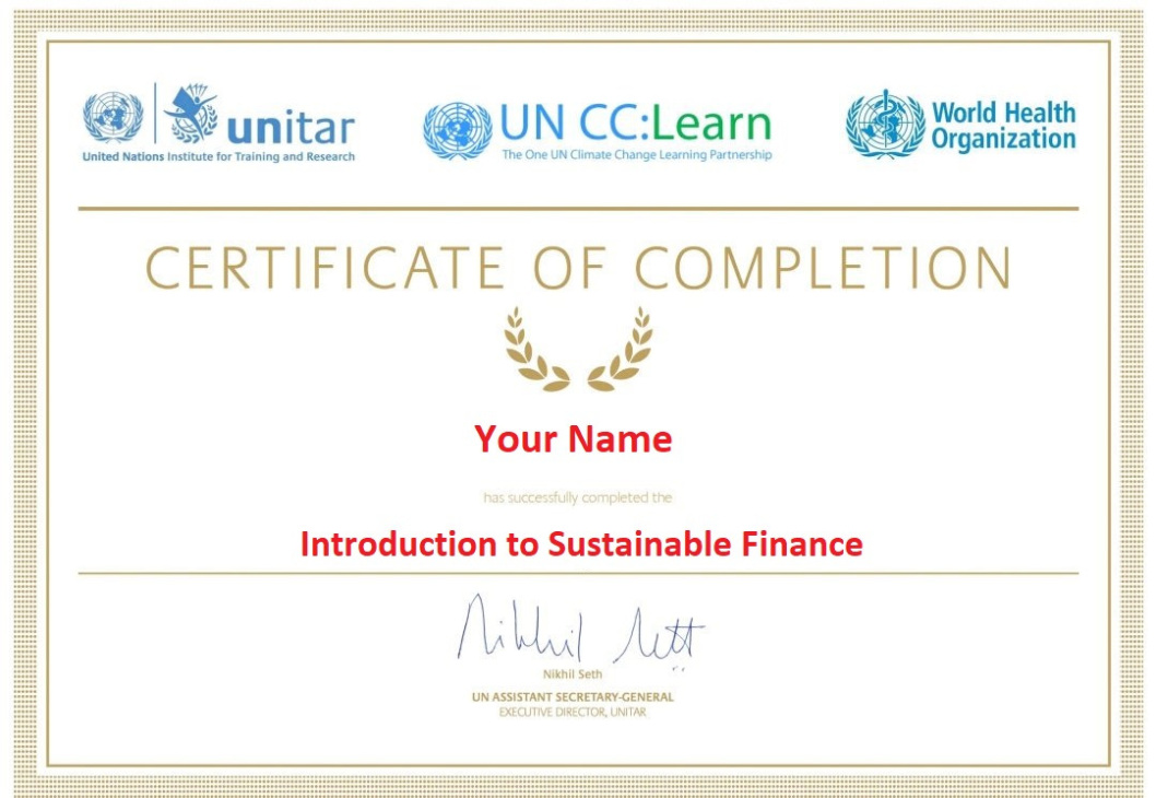 To successfully complete the course and receive a certificate, participants must pass three quizzes with a minimum score of 70%. These quizzes test the learners' understanding of the key concepts covered in the course, ensuring that they have a solid grasp of the principles of sustainable finance. Once completed, participants can download their certificates directly from the 'Certification' page, showcasing their knowledge and expertise in this emerging field.