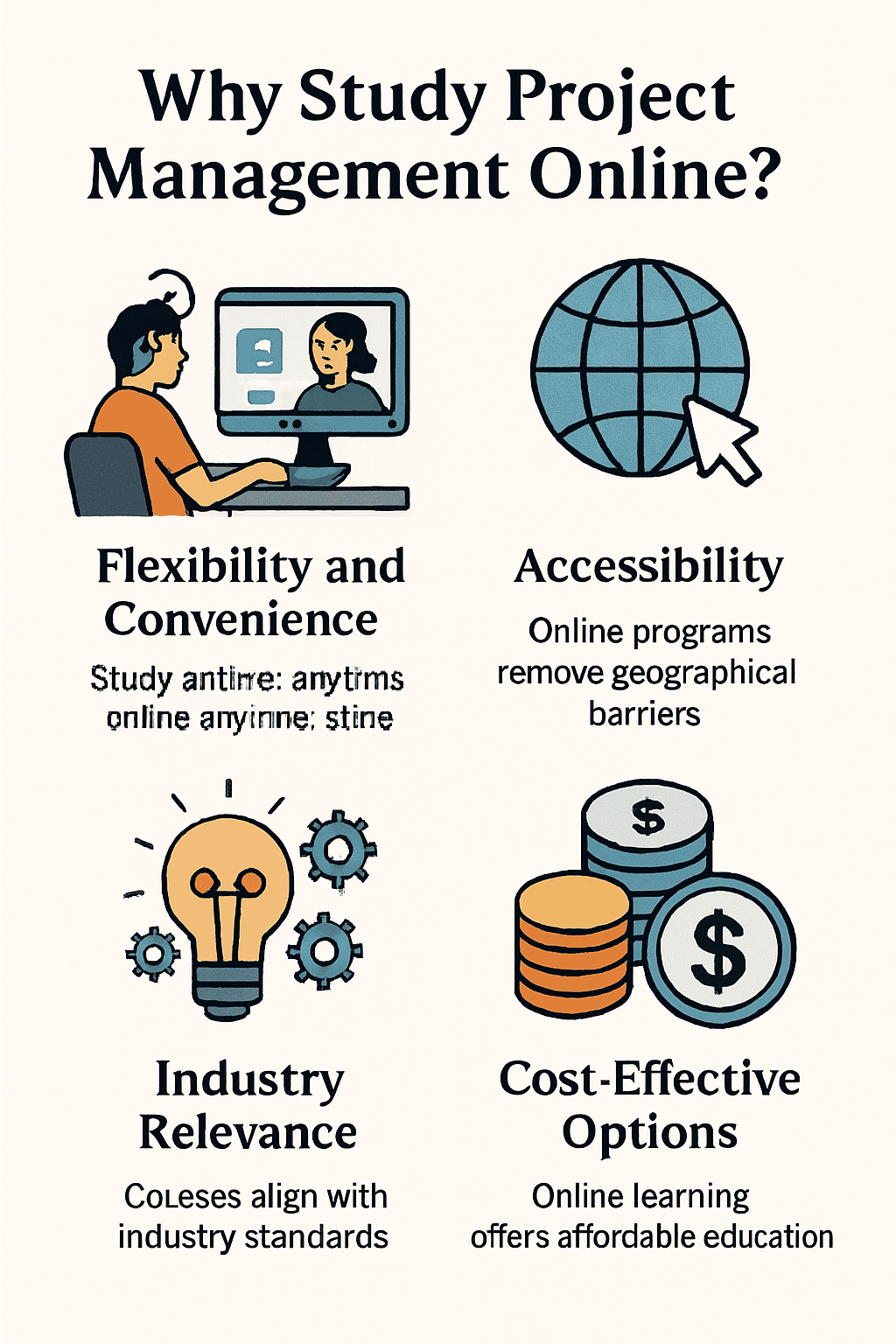 Example: University of Liverpool offers an APM-accredited MSc in Project Management, fully online, covering planning, tracking, and communication https://online.liverpool.ac.uk/.