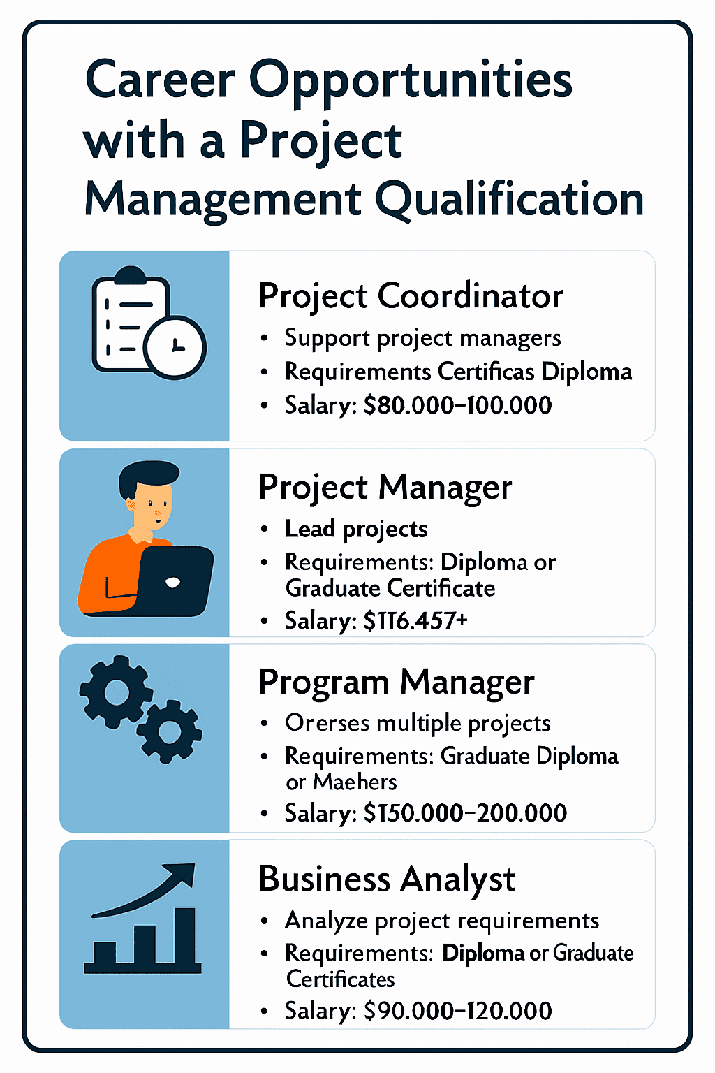 Project management qualifications open doors to diverse roles across industries. Below are key career paths and their requirements: